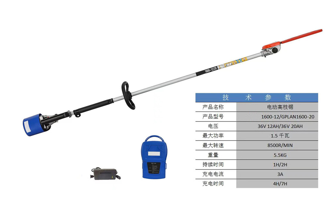 Το μακρύ αλυσιδοπρίονο μπαταριών λίθιου πόλων φορητό ηλεκτρικό είναι με τη μεγάλη ροπή, την ασύρματη δουλεία και την ισχυρή δύναμη για την πολλαπλάσια εύκολη αναγραφή χρήσεων, την περικοπή οπωρώνων, τη διασπασμένη ξυλεία και την ξύλινη κοπή κ.λπ.